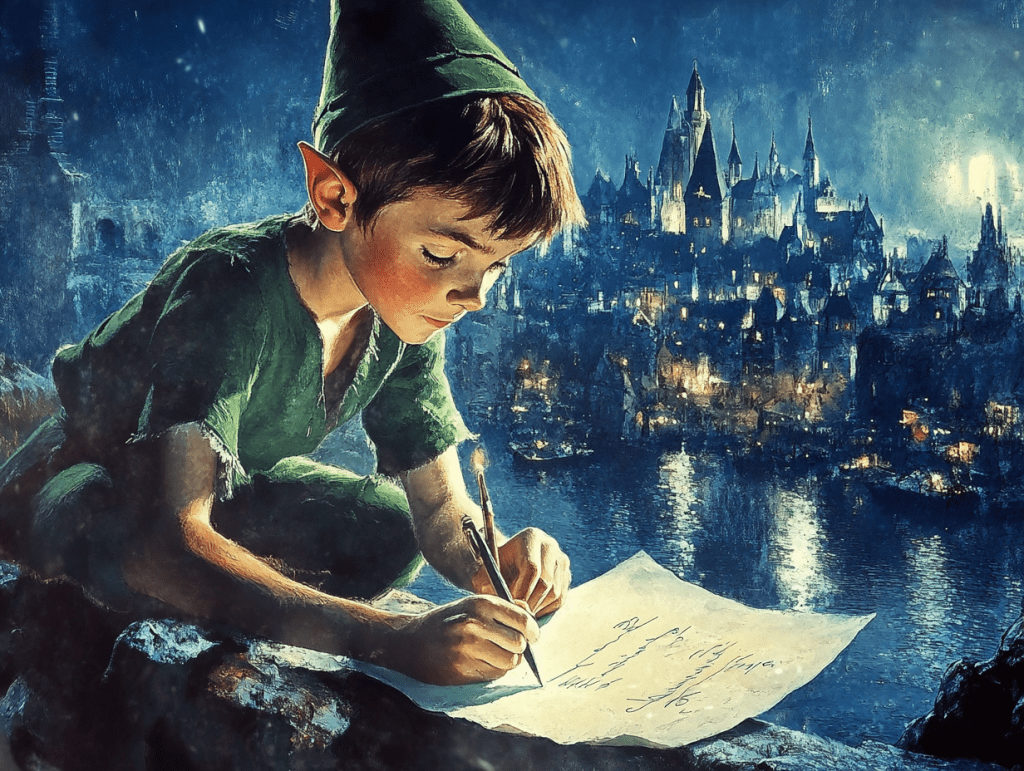 —Queridos Reyes Magos… —comienza el paje otra vez— Este año en el país de Nunca Jamás nos hemos quedado sin hadas. Se han extinguido. Ha sido inevitable. Nadie cree en la magia. No puedo volar. Era una tragedia hasta que Garfio me habló de una máquina que dice que es mejor que el polvo de Campanilla. Se llama Ferrari, me ha dicho. Como me he portado muy bien, quiero que me traigáis uno. Un Ferrari. Gracias P.P.